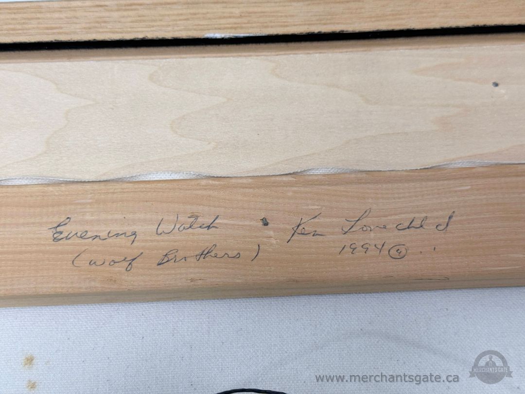 Ken Longchild “Evening Watch (Wolf Brothers)” Framed Print 1984 / Indigenous Wildlife Art