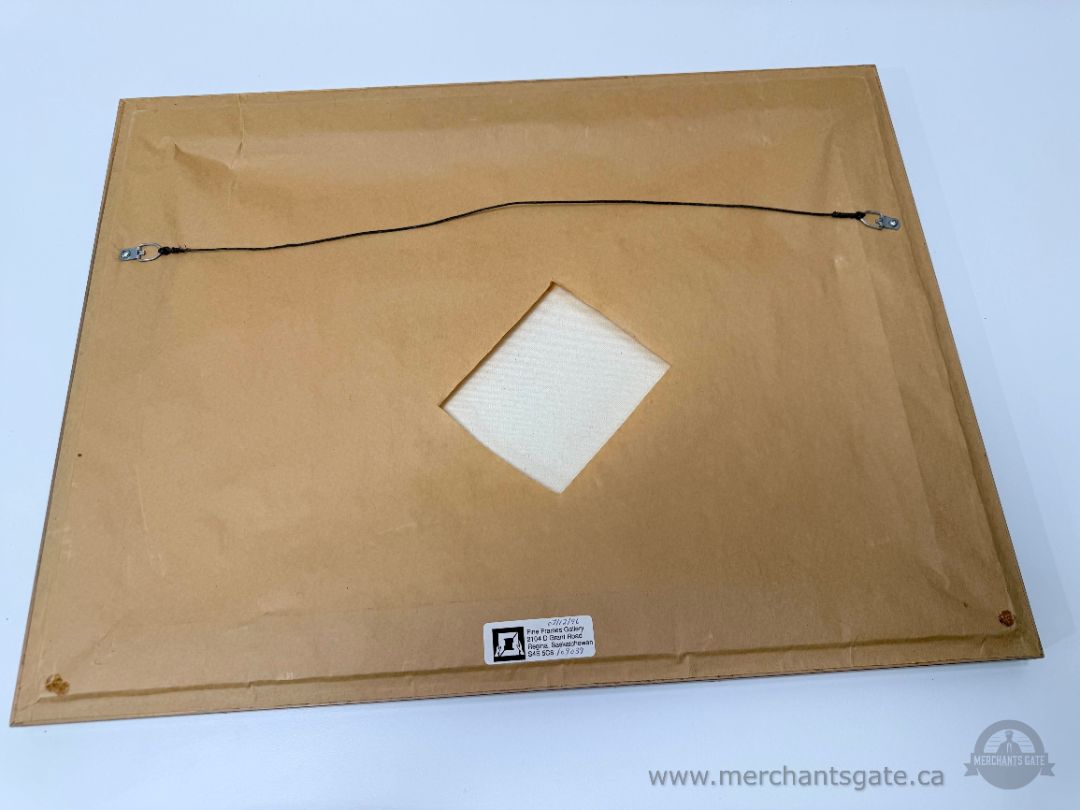 Label from Fine Frames Gallery, Regina, Saskatchewan remains on the back.