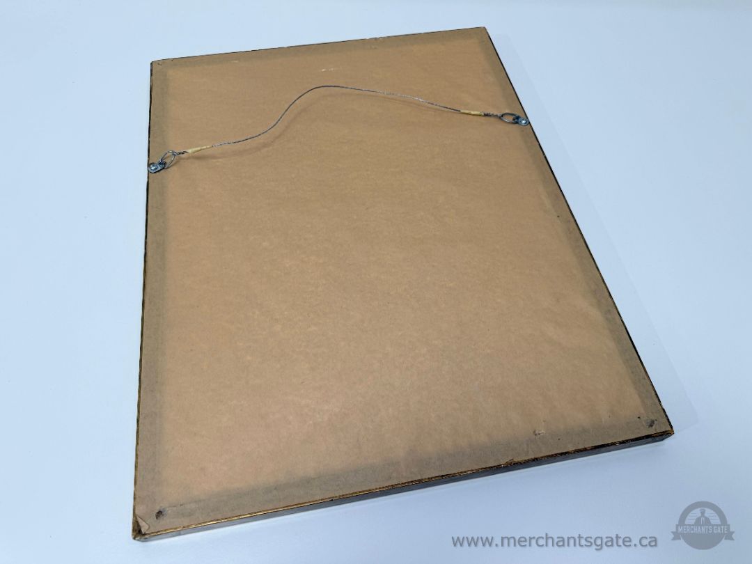 The piece is framed under glass. The matting shows rippling and would benefit from re-framing, which has been factored into pricing. Frame and glass are in decent condition and present well.