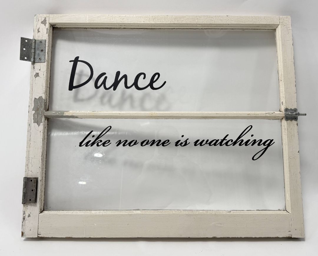 Two matching vintage wood window frames with original chippy white paint, farmhouse-style hinges, and a whole lotta rustic character. Each measures approx. 28" x 33.5" and comes with glass panes intact. Currently rocking some inspirational wall decal but the vinyl can easily be peeled off to restore these beauties to blank-canvas glory. Perfect for: - Mirror backing - Chalkboard conversion - Faux window decor - Wall art that doesn’t tell you how to live Selling as a set. Instant rustic chic with a side of DIY potential.
