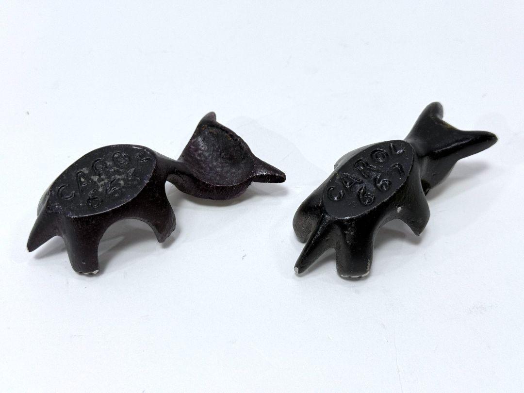 Each figure is approximately 3 inches wide and marked "Carol 667." These unique, solid-metal critters have plenty of charm and character. Both figures included.