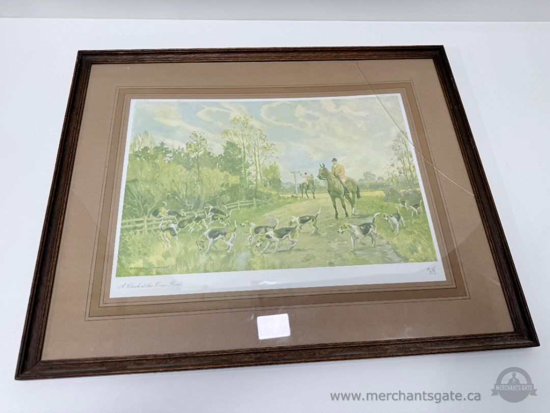 Set of 4 Antique Fox Hunting Prints by Charles Walter Simpson (1930s) – Framed