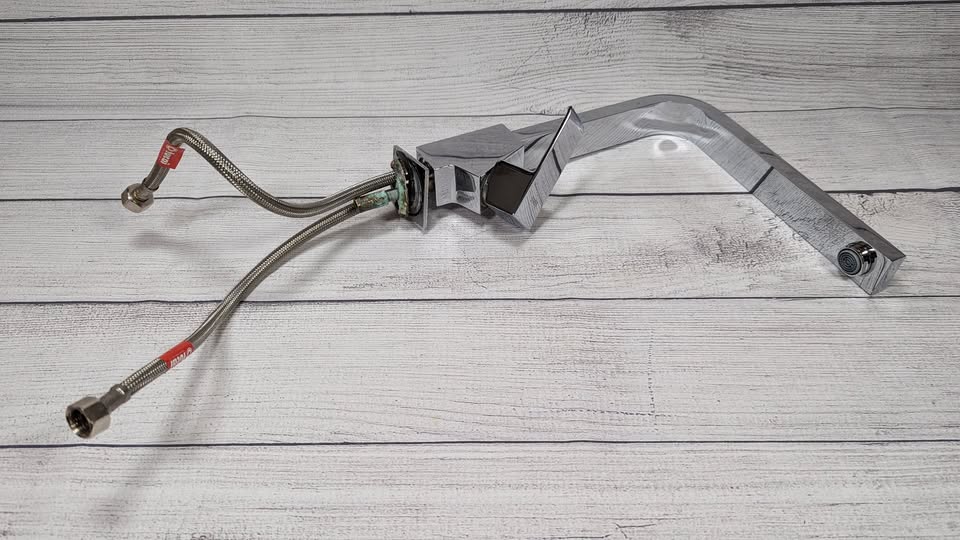 Very little wear. Retails for $500+. Tres is a British company. Here is a link: https://www.riluxa.com/en_GB/brands/tres/deck-mounted-single-lever-kitchen-tap-106440-taki-trk-106440.html