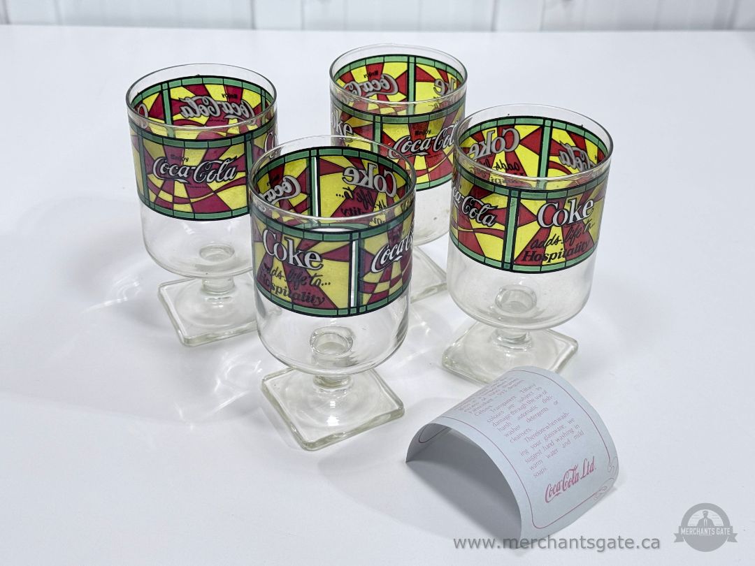 Vintage Coca Cola Stained Glass Style Goblet Glasses Set of 4 Coke Pedestal Tumblers